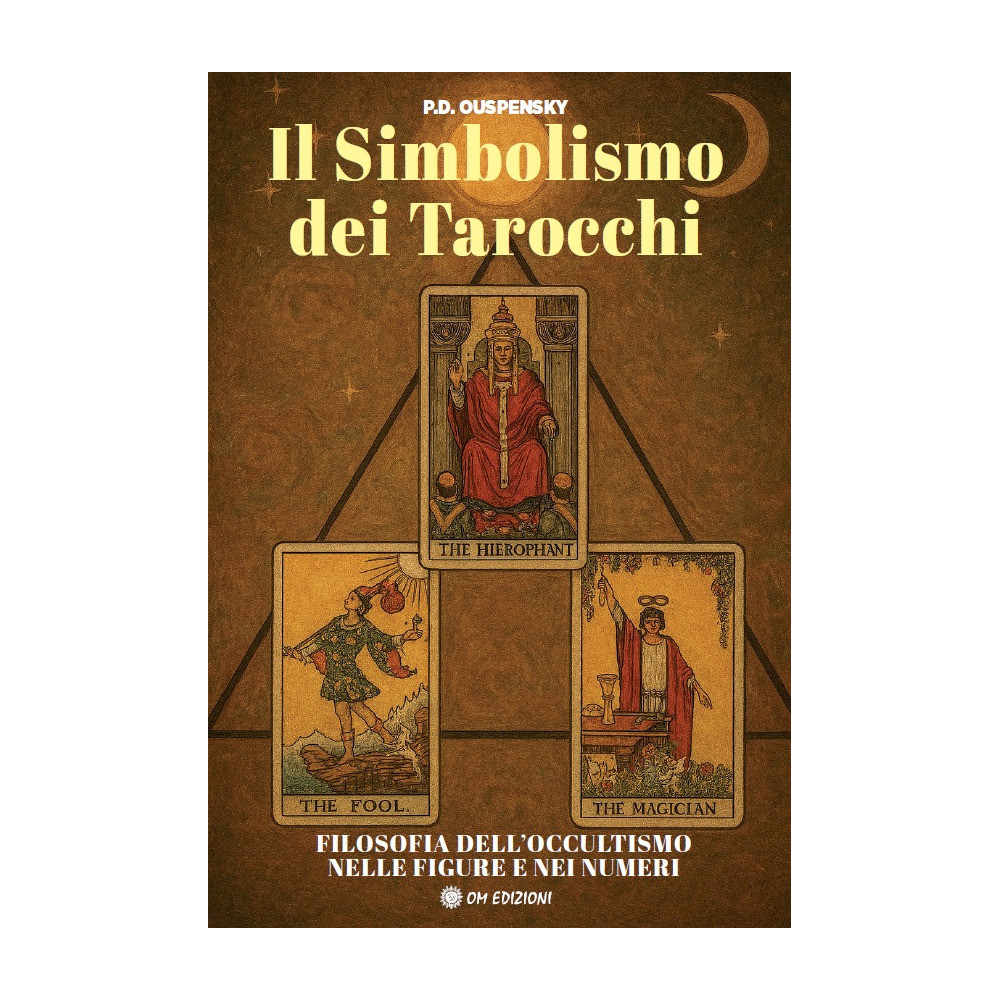 Molti studiosi hanno visto nei Tarocchi una sintesi delle scienze ermetiche, o almeno un tentativo di raccoglierle in un unico compendio simbolico. L’interesse di P.D. Ouspensky per carte risale ai primi anni del Novecento, antecedente al suo incontro don Gurdjieff. Affscinato dalla loro enigmatica struttura, nel 1913 pubblica un breve saggio in cui, con stile poetico e visionario, descrive la “macchina filosofica” rappresentata dai 22 arcani maggiori. Nella sua interpretazione, i Tarocchi diventano un autentico “libro” di simbolismo ermetico, capace di aprire l’accesso a una realtà più ampia e sottile. La disposizione triangolare delle carte proposta da Ouspensky riflette la relazione metafisica tra Dio, l’Uomo e l’Universo.